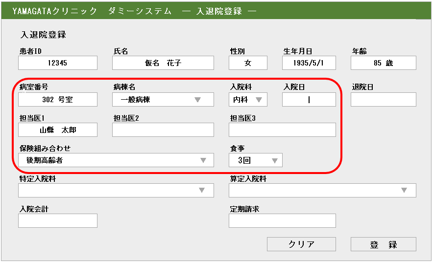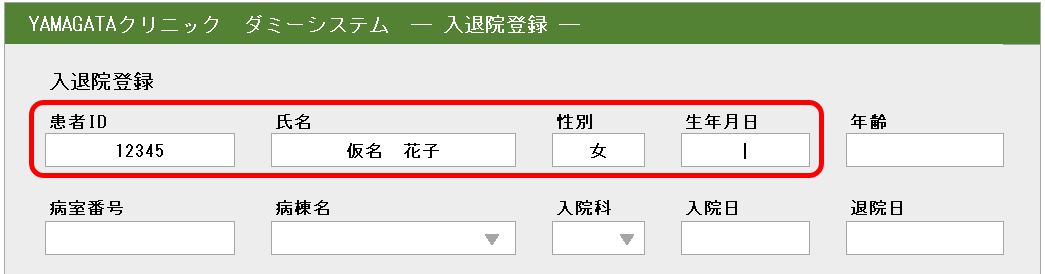電子カルテから患者情報を呼び出す手順については関連項目のリンクを参照してください。