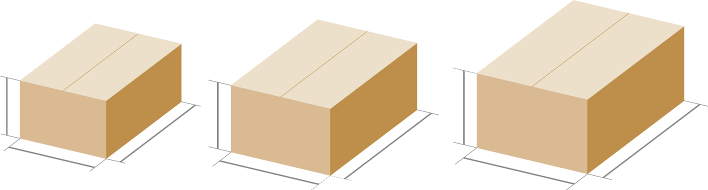 梱包の3辺(高さ、幅、奥行き)を測る