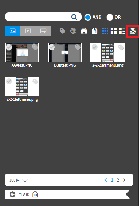 画像表示順の変更は右上のボタンより4パターンから選択・変更可能。