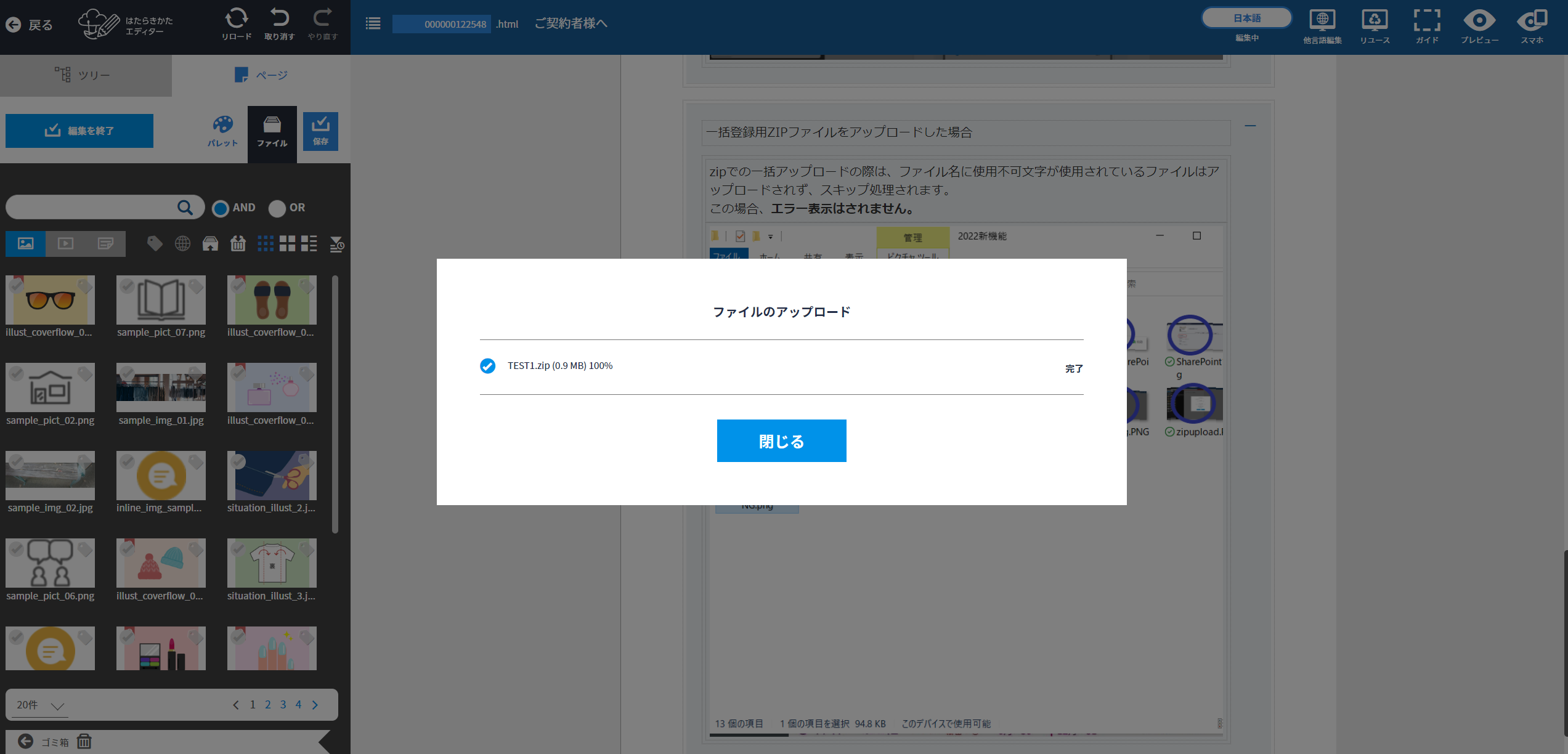 はたらきかたエディターにアップロードする画像・動画・ファイル・一括登録用Zipファイルにて