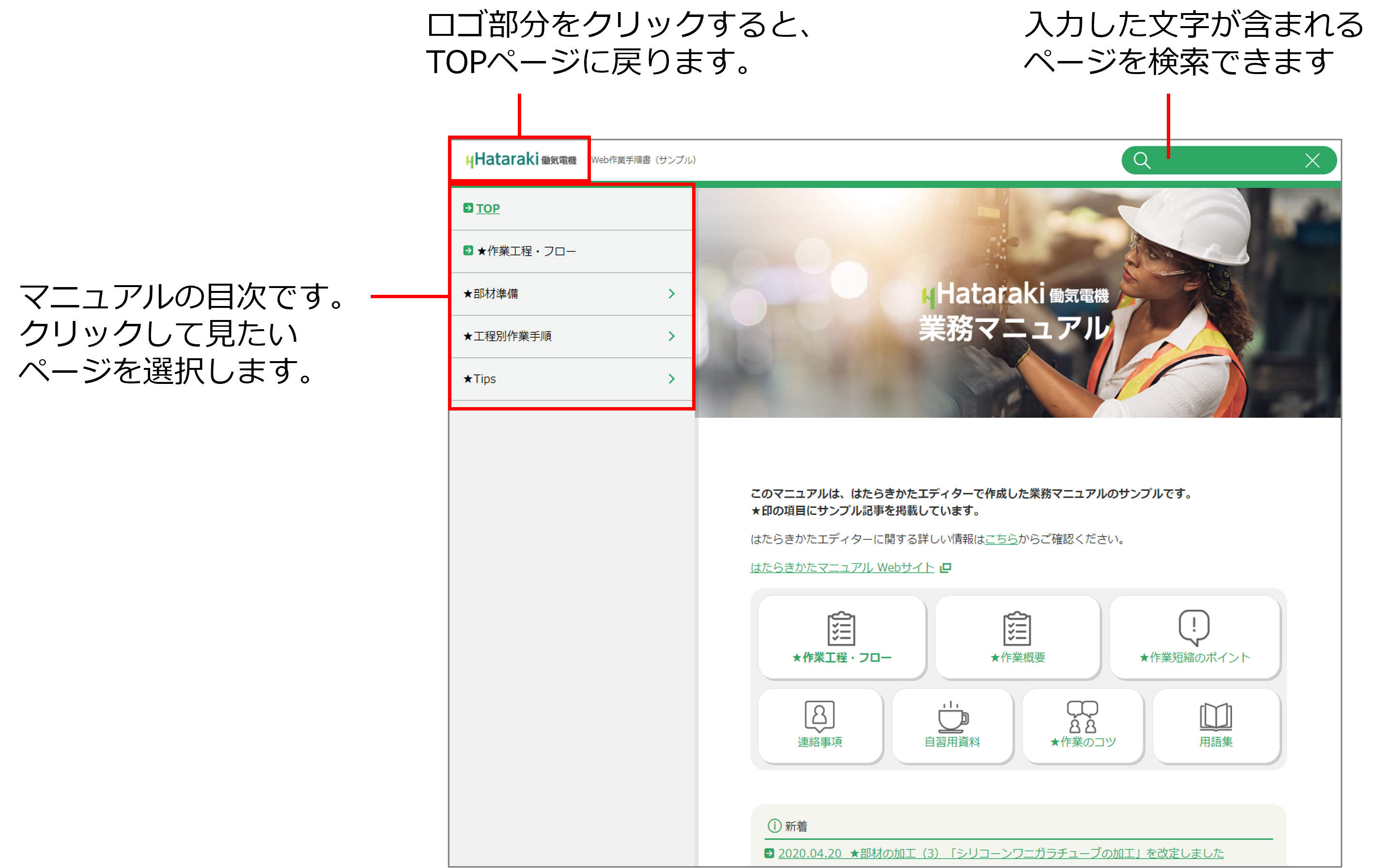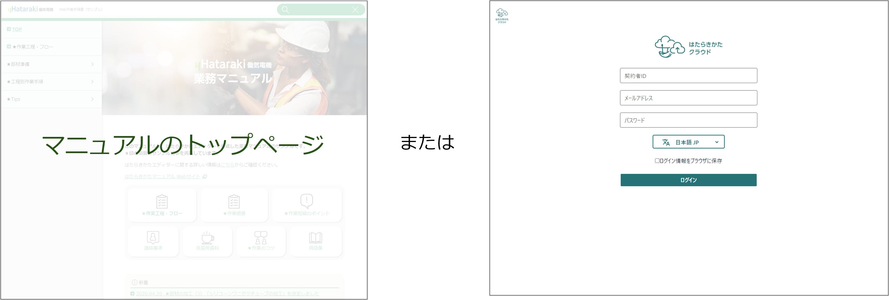 「マニュアルのトップページ」または「はたらきかたクラウドのログイン画面」が表示されます。