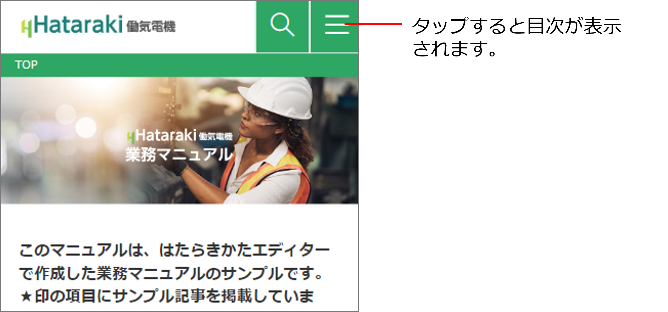 スマートフォンやタブレットでマニュアルを見る場合でも、表示される内容はPCの場合と同じです。