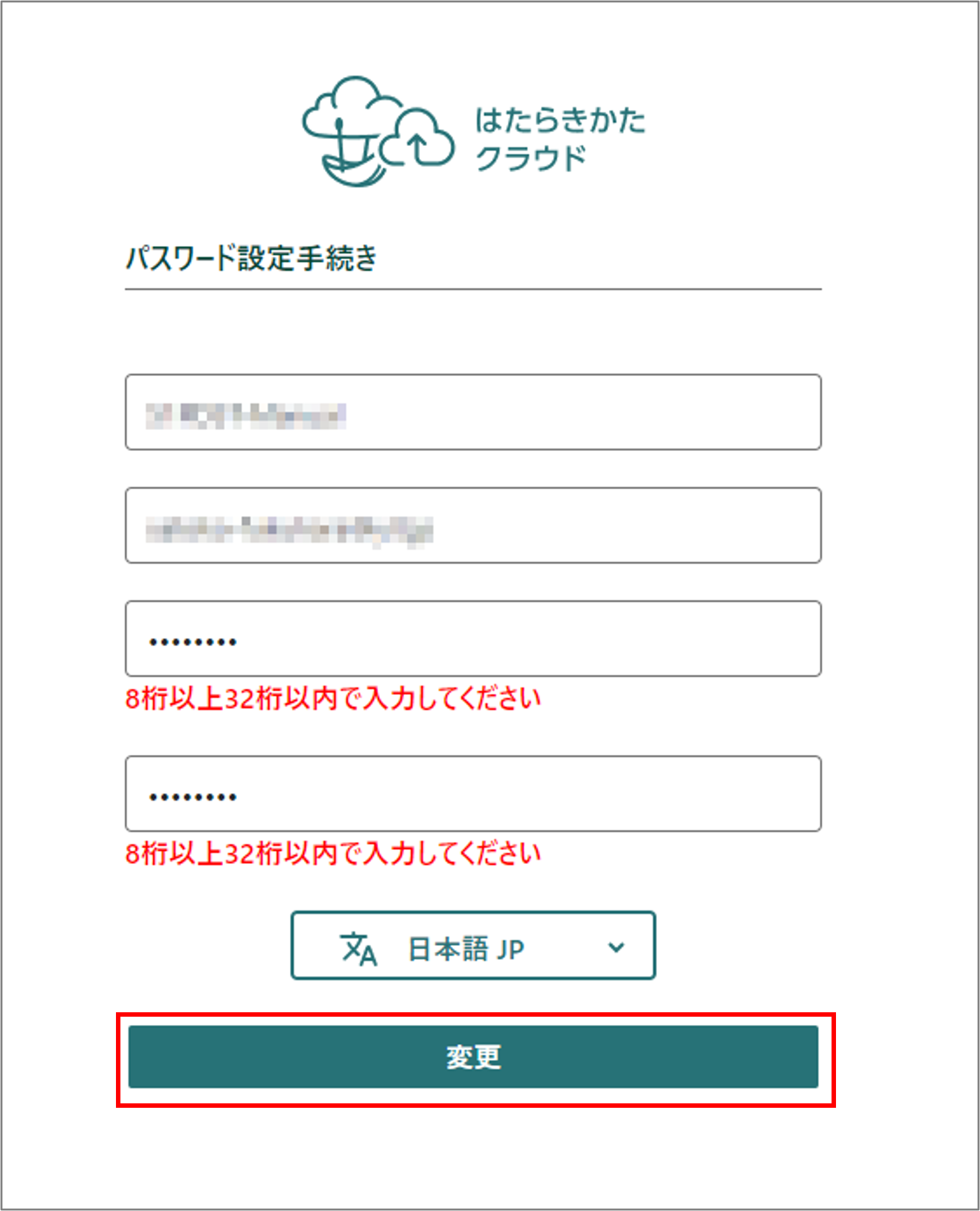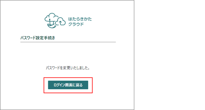 ユーザー登録完了メールの[はたらきかたクラウドパスワード設定画面]をクリックする
