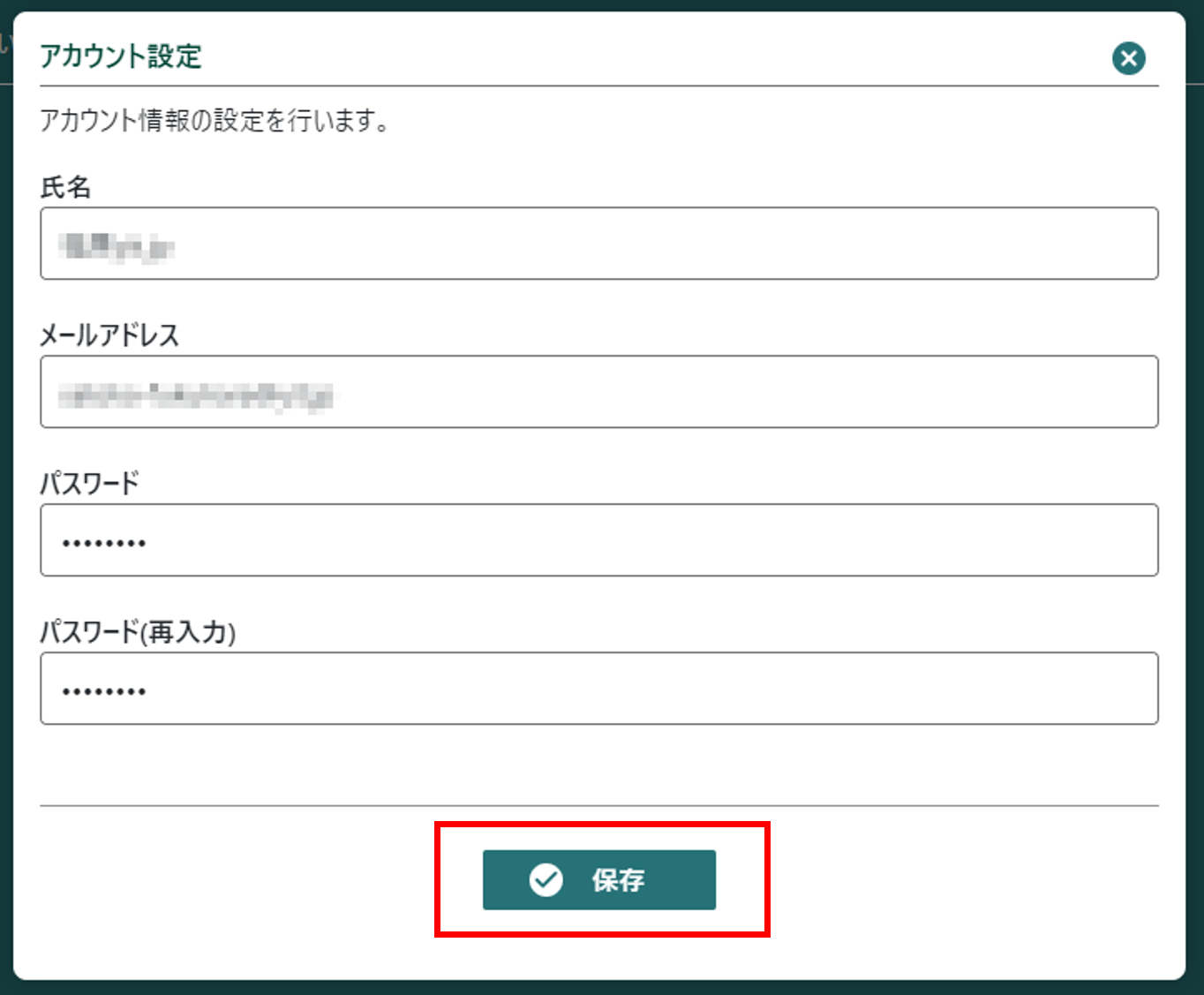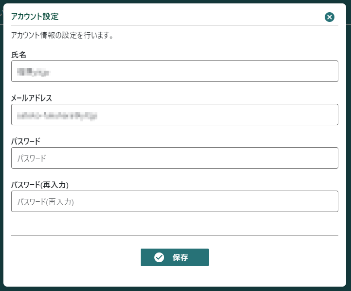 パスワードを変更する場合は、「パスワード」および「パスワード(再入力)」に新しいパスワードを入力してください。