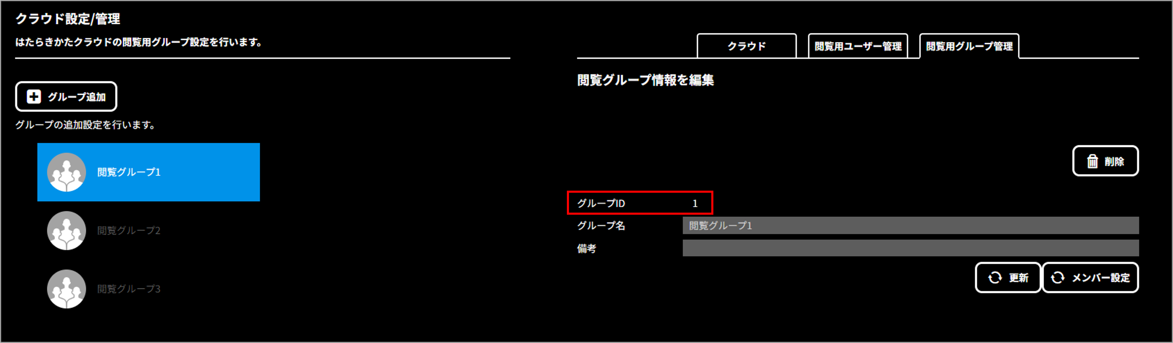 [閲覧用グループ管理]をクリックし、登録したいグループを選択する