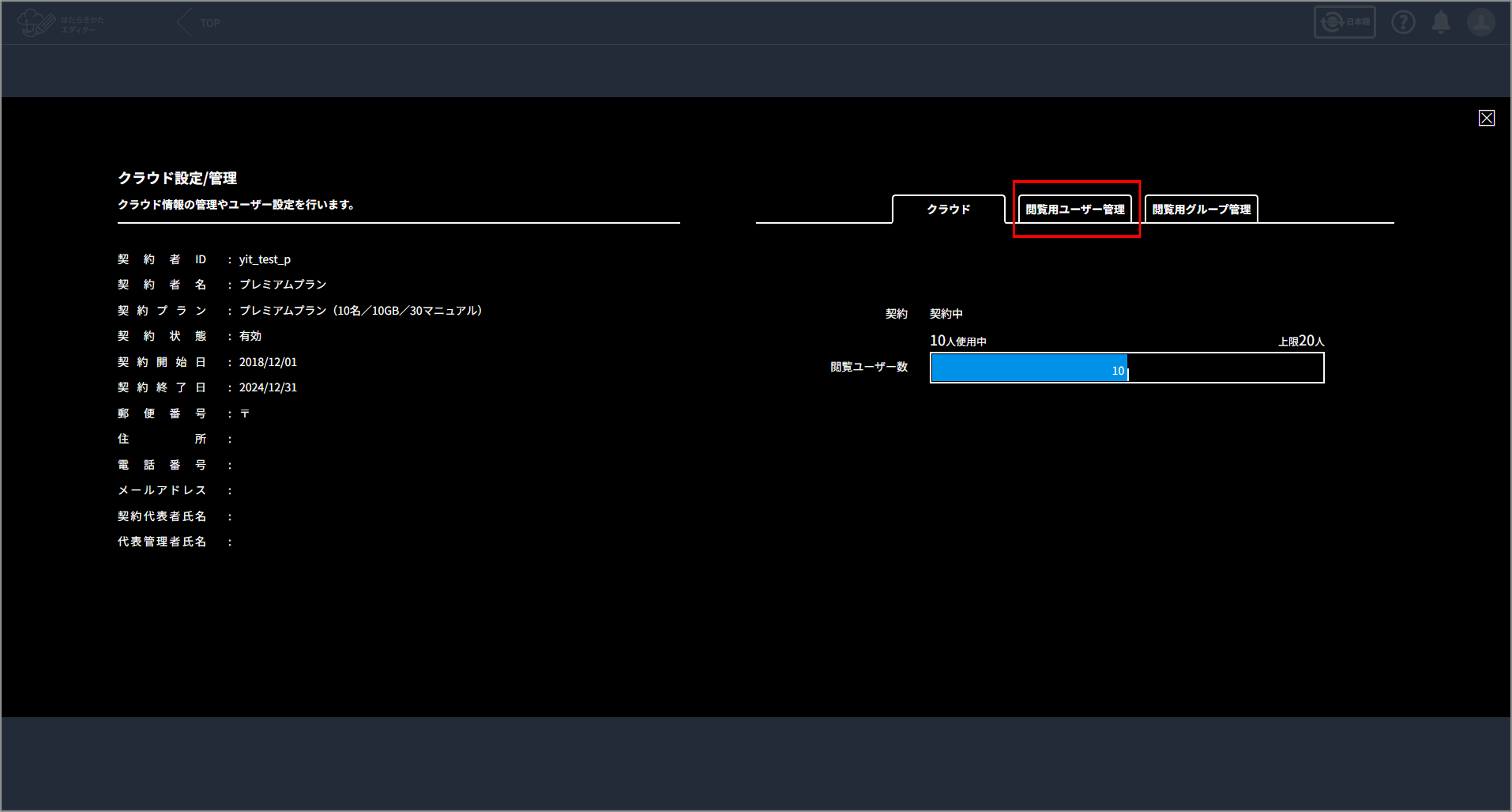 [閲覧用ユーザー管理]をクリックする