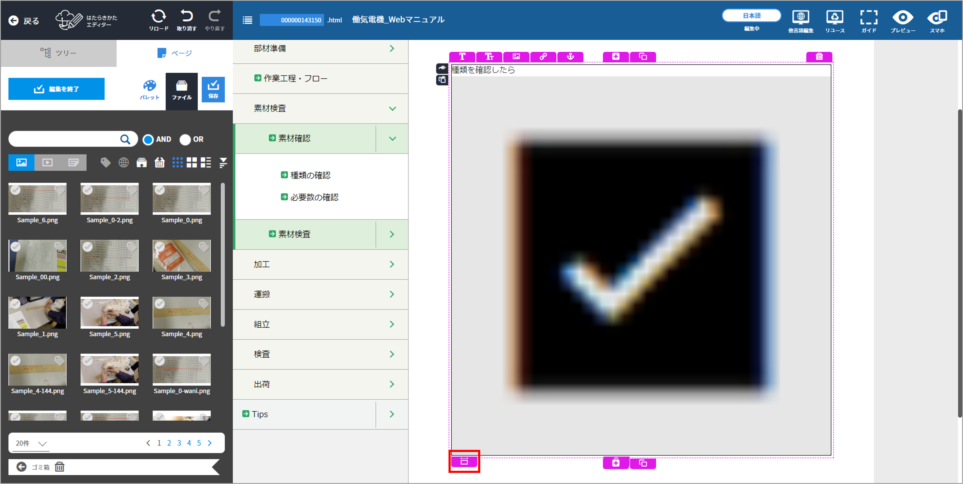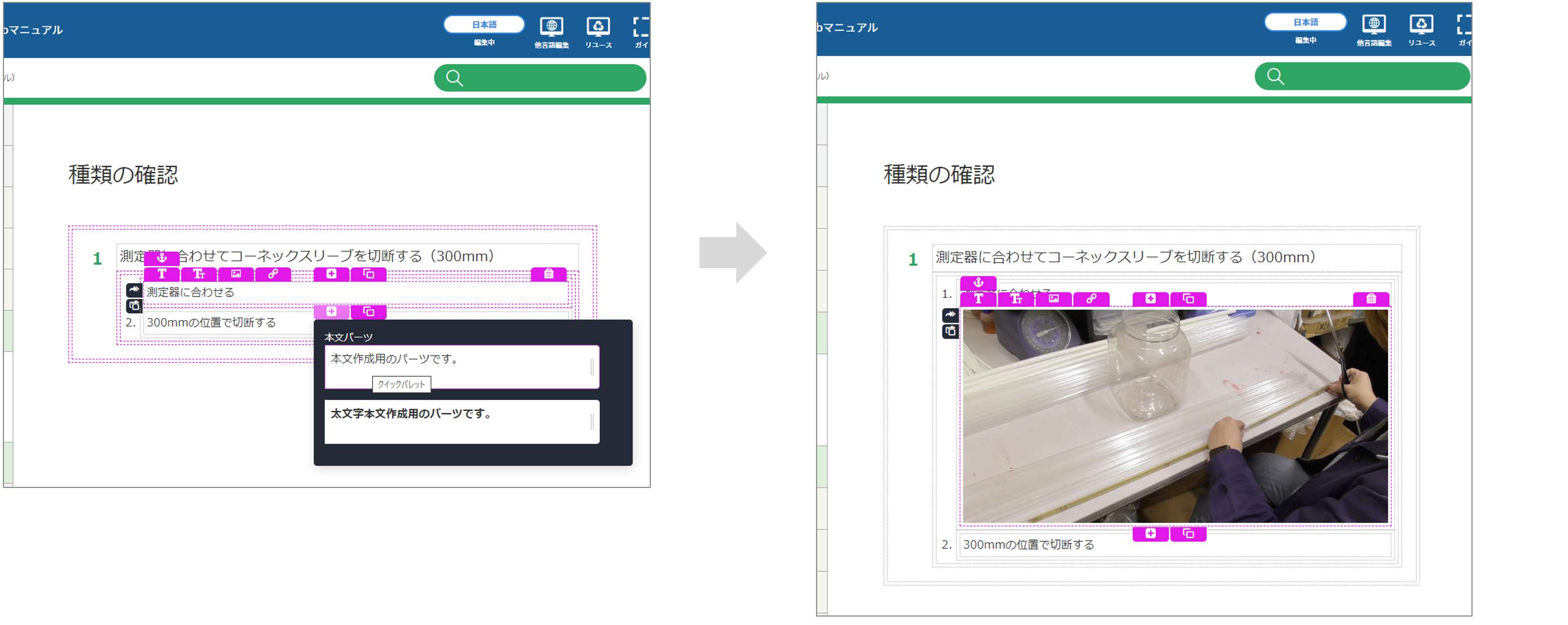 ビュレットパーツや数字リストパーツの途中に画像を入れたい場合も、同様の操作で画面などの画像を配置できます。