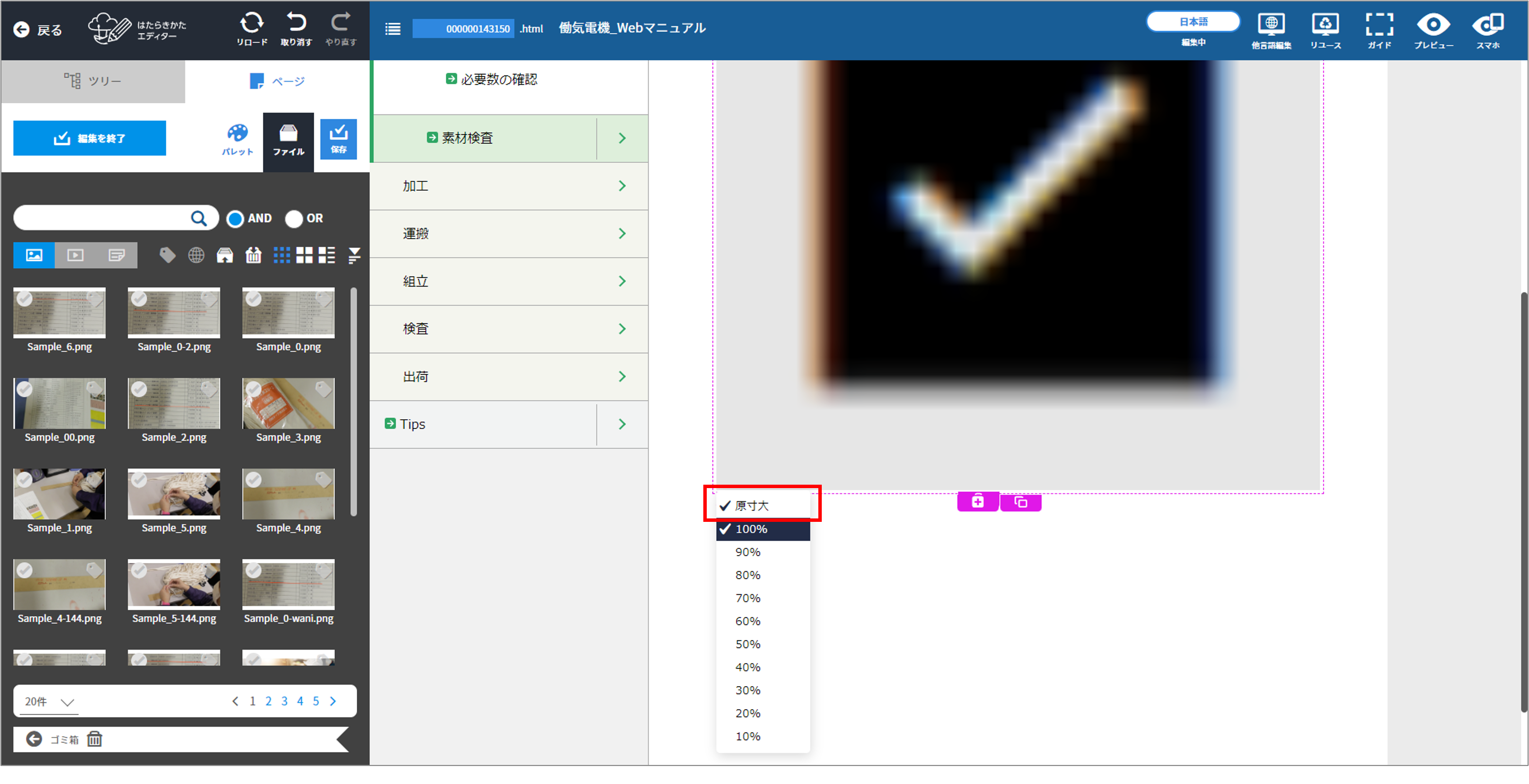実際の画像のサイズで表示されます。