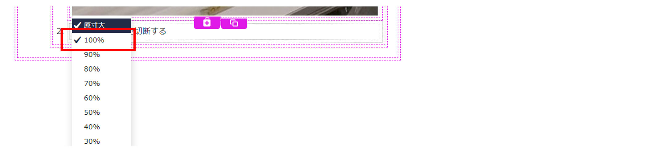 [原寸大]をクリックする