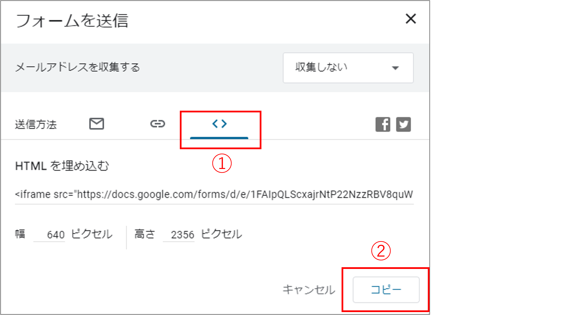 [埋め込みコード]欄をクリックしてすべてコピーする