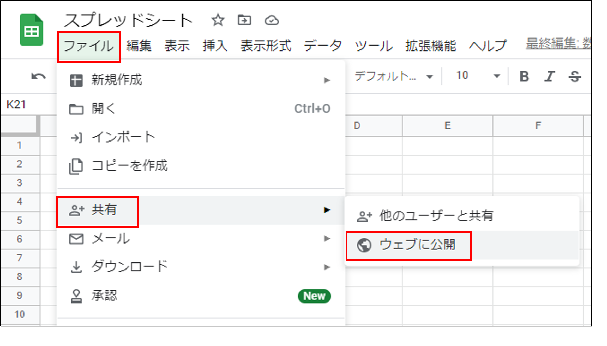 スプレッドシートの場合