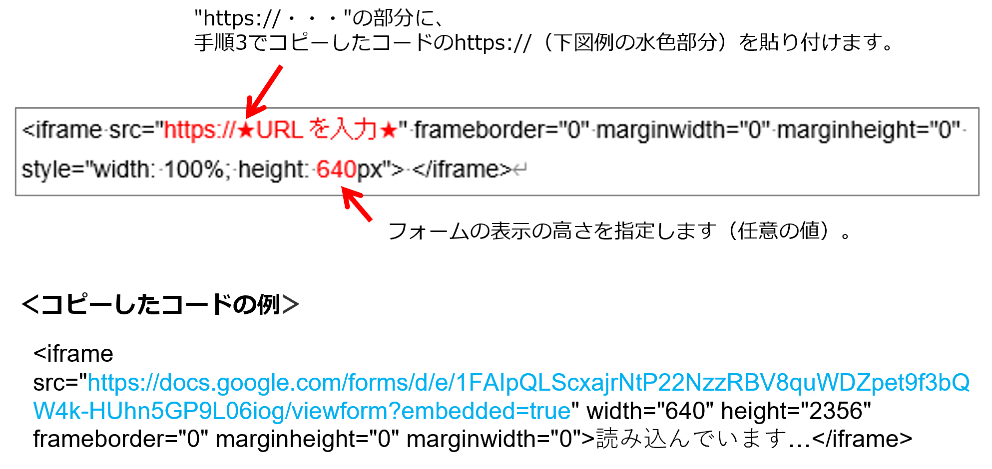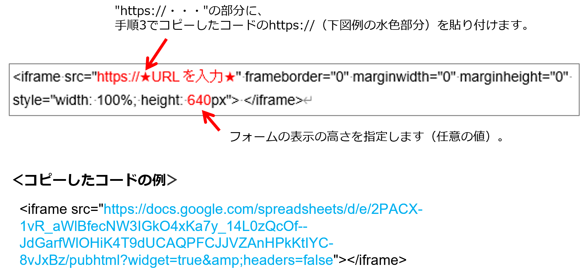 はたらきかたエディターの埋め込みパーツに貼り付けるため、コードを変更する
