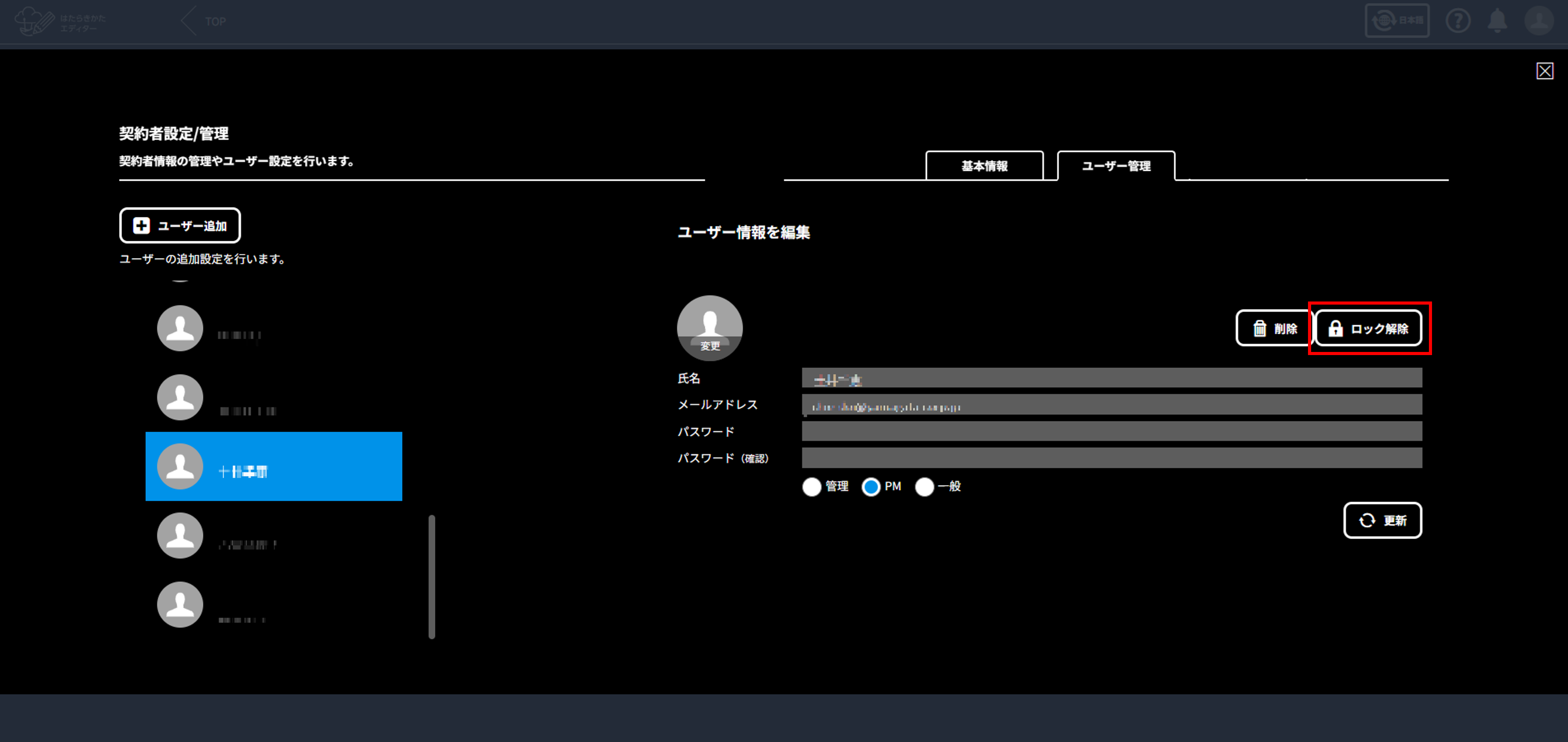 ユーザー登録の期限が切れてパスワード設定できない場合や、登録メンバーのパスワードがロックされた場合などは、管理者の方がパスワードの設定やロック解除を行ってください。