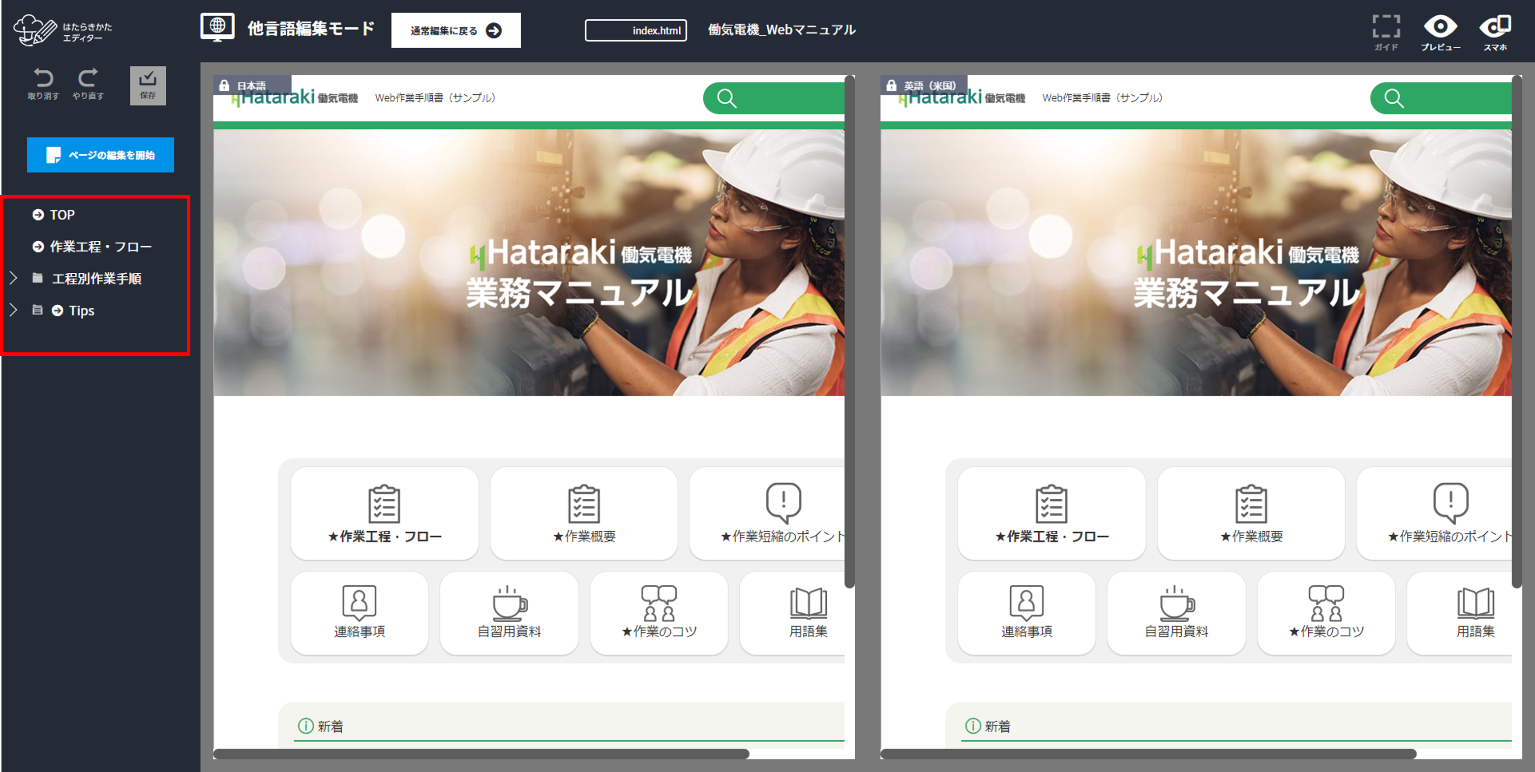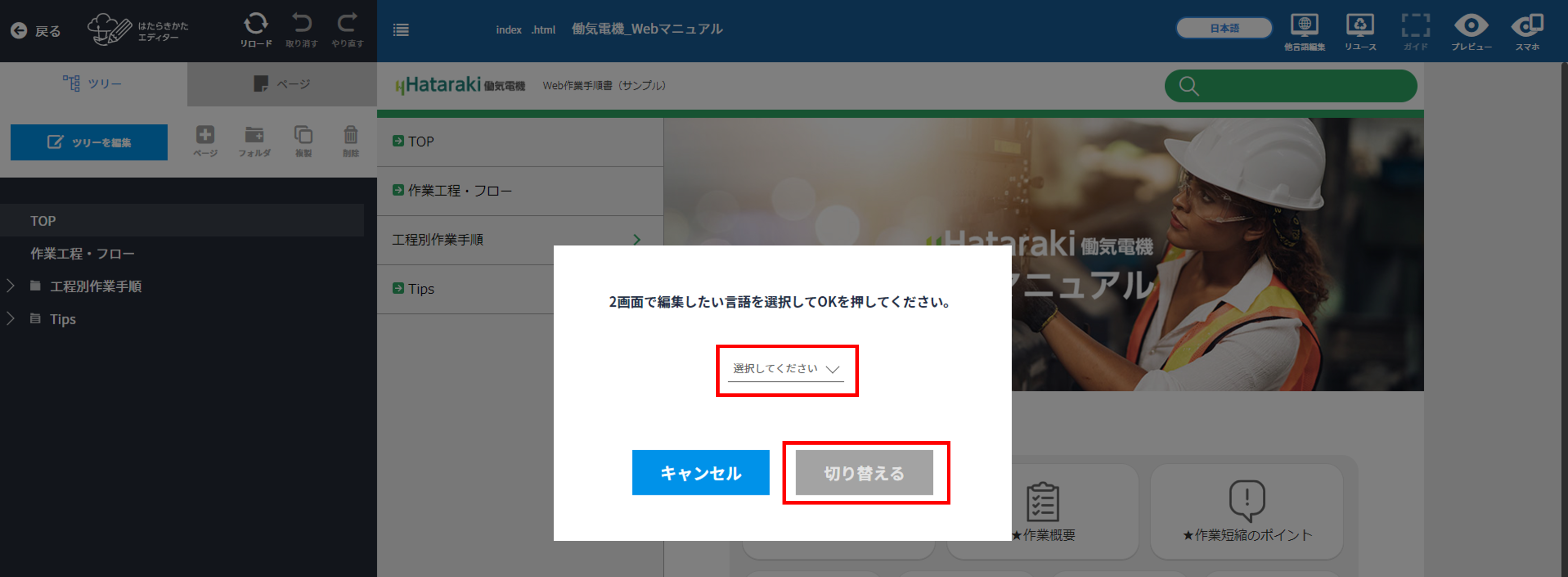 翻訳元言語をクリックして言語を切り替えてから、[他言語編集]をクリックしてください。