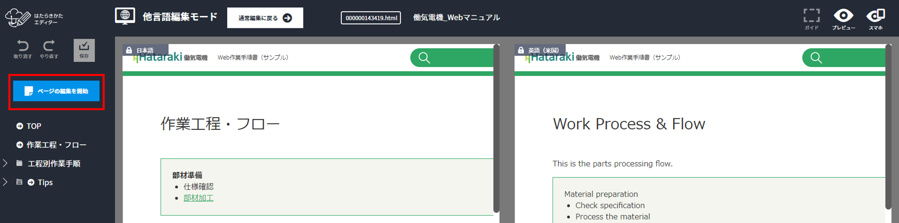 編集するマニュアルを選択し、[編集開始]をクリックする
